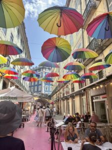 The easiest Portuguese tradition to adopt is undoubtedly the one that takes any decent Lisboner – at dawn or dusk – to enjoy a glass of ginjinha (or, for Óbidos-style, poured into a chocolate cup). The ritual is beautifully simple: step into one of Lisbon’s tiny ginjinha bars, order your shot, and choose whether you want it “com elas” (with the cherries) or “sem elas” (without). We tried ours with- the berries were super sour, but like the tradition of “eating the worm,” I believe worthwhile to the authentic experience. The Ginjinha liqueur is served in small glasses with or without ginjas. In Lisbon Downtown, we went to an intimate venue called Ginjinha Sem Rival, with their standing-room-only atmosphere and authentic character. The bottles even looked like old medicine bottles! I’m not sponsored in any way, but I found the shots to be delicious, if a bit pricey. Don’t let my calling of these puppies “shots” fool you- please don’t down these in one go. Sip to taste the experience, and people watch at the tall red stools nearby. Our shots in 2025 were €1.75 each, but a bottle with 200 ml was about €5.95, so far cheaper to buy in bulk. All the better to share with friends!
